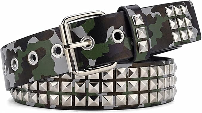 Studded Rivet Camouflage Belts Y2K Punk Hip Hop Faux Leather Grommet for Cosplay for Men Women