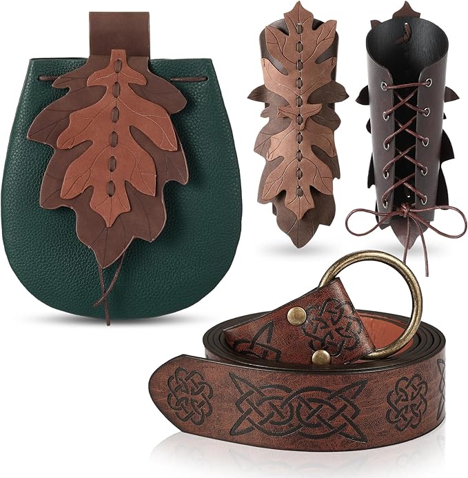 Women Renaissance Accessories Medieval Viking Belt Renaissance Leaf Belt Bag Leather Bracers for Ren Faire Costume