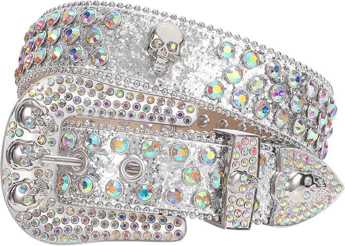 Rhinestone Skull Belt Men Women Bling Stylish Belt Punk Fashion Studded Leather Belt for Jeans Pants Jacket