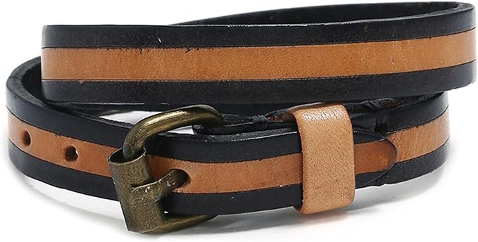 Punk Rock Adjustable Belt Buckle Wristband Print Pattern Thin Pu Leather Cuff Bracelet