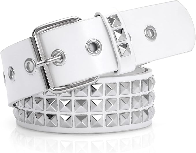 Metal Punk Rock Rivet Studded Belt for Women Men, Gothic Belt with Bright Pyramid Studs