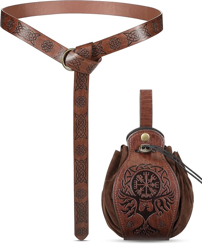 2 Pcs Medieval Viking Belt Leather Belt Pouch Renaissance Leather Belt Medieval Bag Renaissance Accessories