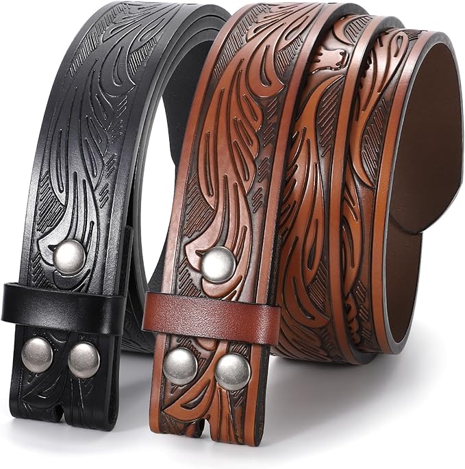 Western Belts for Men Women without Buckle, 2 Pack Cowboy Cowgirl Belt Strap Country Western Leather Belts for Jeans